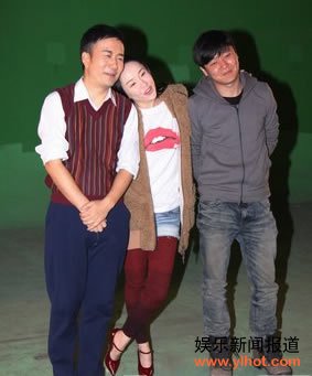 张扬(左)前来捧场筷子兄弟新作,王太利(右)乐得合不拢嘴,肖央(中)大呼感谢。