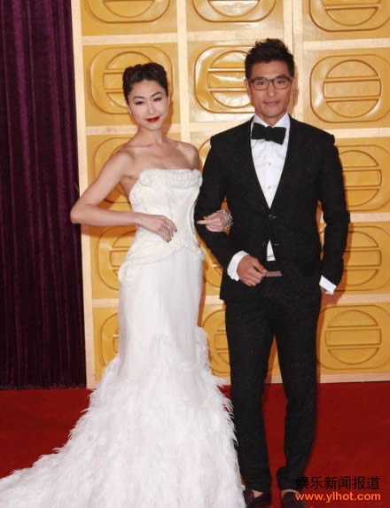 胡定欣的浓烈红唇格外刺眼,而身旁一身笔挺西装的陈展鹏却显得风度翩翩!